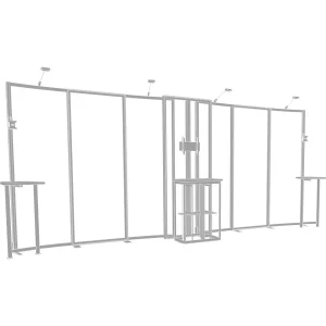 Modular Kit 09 is an ideal 10ft x 20ft inline display solution for the serious exhibitor. Kit 09 combines a heavy-duty aluminum extrusion frame, push-fit SEG fabric graphics and monitor mounts, backwall tables and a backwall counter to create an eye-catching and functional display. LED display lighting illuminates the backwall and messaging for increased visibility. Kit 09 is reconfigurable into 10ft x 10ft Kit 01, increasing the value, lifecycle and functionality of the exhibit. Count on making an unforgettable impact with Hybrid Pro Modular 10ft x 20ft Kit 09.