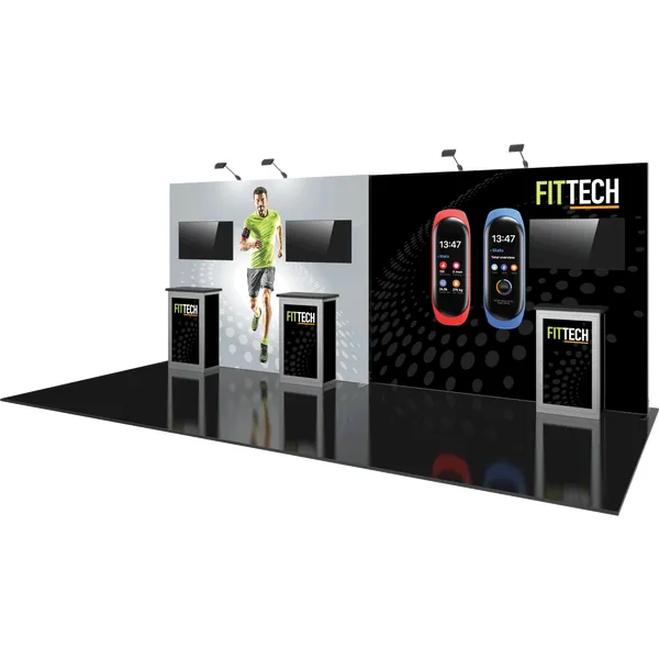 – Reconfigurable into 10’x10′ inline display – additional components may be required