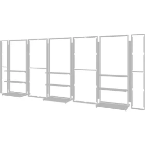 – 6 silver steel shelves and 6 silver base decks for merchandising