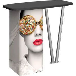 Vector Frame™ Counter 07 complements the Vector Frame series of exhibit kits, but is also ideal for any stand-alone event or display. Stylish and unique, Vector Frame Counter 07 features a V-leg accent and graphic counter pillar. Combining simple extrusion-based frames and choice of push-fit fabric or rigid graphics, this easy-to-use counter will add a professional finish to any environment.